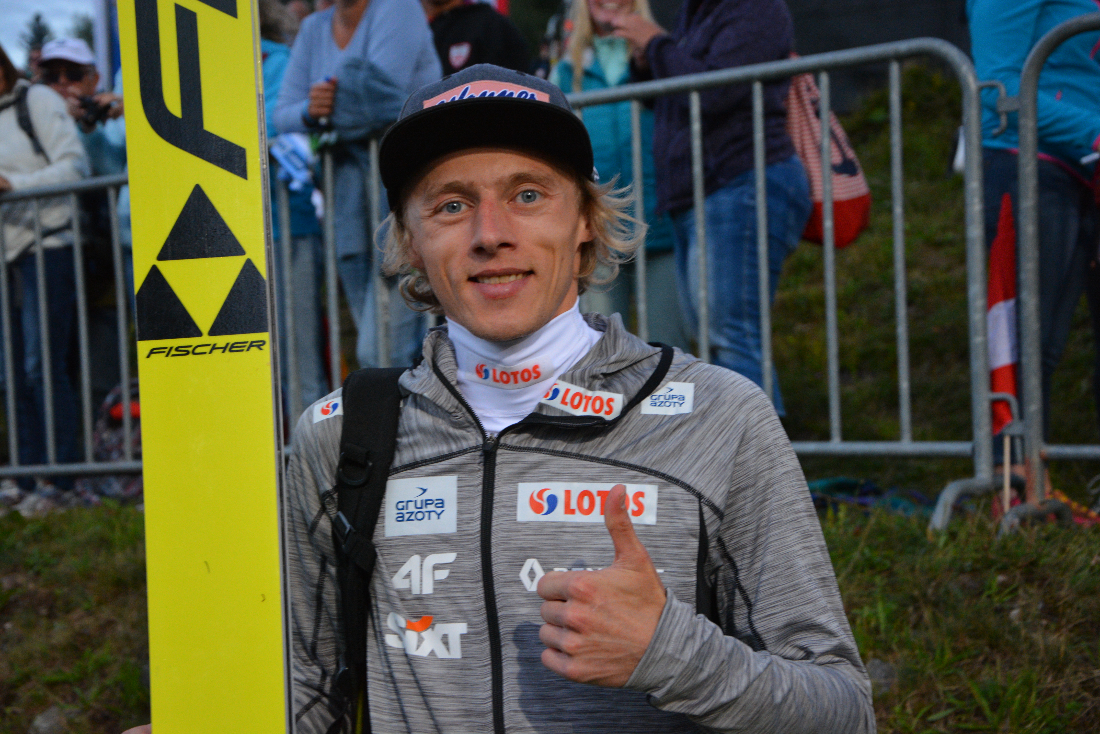 Druga seria była już tylko postawieniem przysłowiowej kropki nad „i” – nie tylko przez Dawida, ale również przez innych reprezentantów Polski. Dość powiedzieć, że finalnie wszyscy uplasowali się w pierwszej dziesiątce zawodów, zdobywając razem największą w historii liczbę punktów podczas zawodów LGP odbywających się poza granicami kraju! Kiedy na belce zasiadał Dawid, publiczność niemal zamilkła. Niemcy liczyli na nieudaną próbę, która oznaczałaby zwycięstwo Stephana Leyhe. Polacy czekali na kolejną możliwość odśpiewania Mazurka Dąbrowskiego. W strefie medialnej również było niespokojnie. Wielu dziennikarzy już robiło wywiady, ale kątem oka dalej patrzyło na wydarzenia rozgrywane na Adlerschanze. Dawid w powietrzu… I jest, jest pierwsze miejsce, jest wymagana odległość! Nie obyło się bez drobnego jęku zawodu gospodarzy i szaleństwa polskich kibiców. Tym bardziej, że na trzecim miejscu znalazł się Piotr Żyła. Naprawdę było z czego się cieszyć!