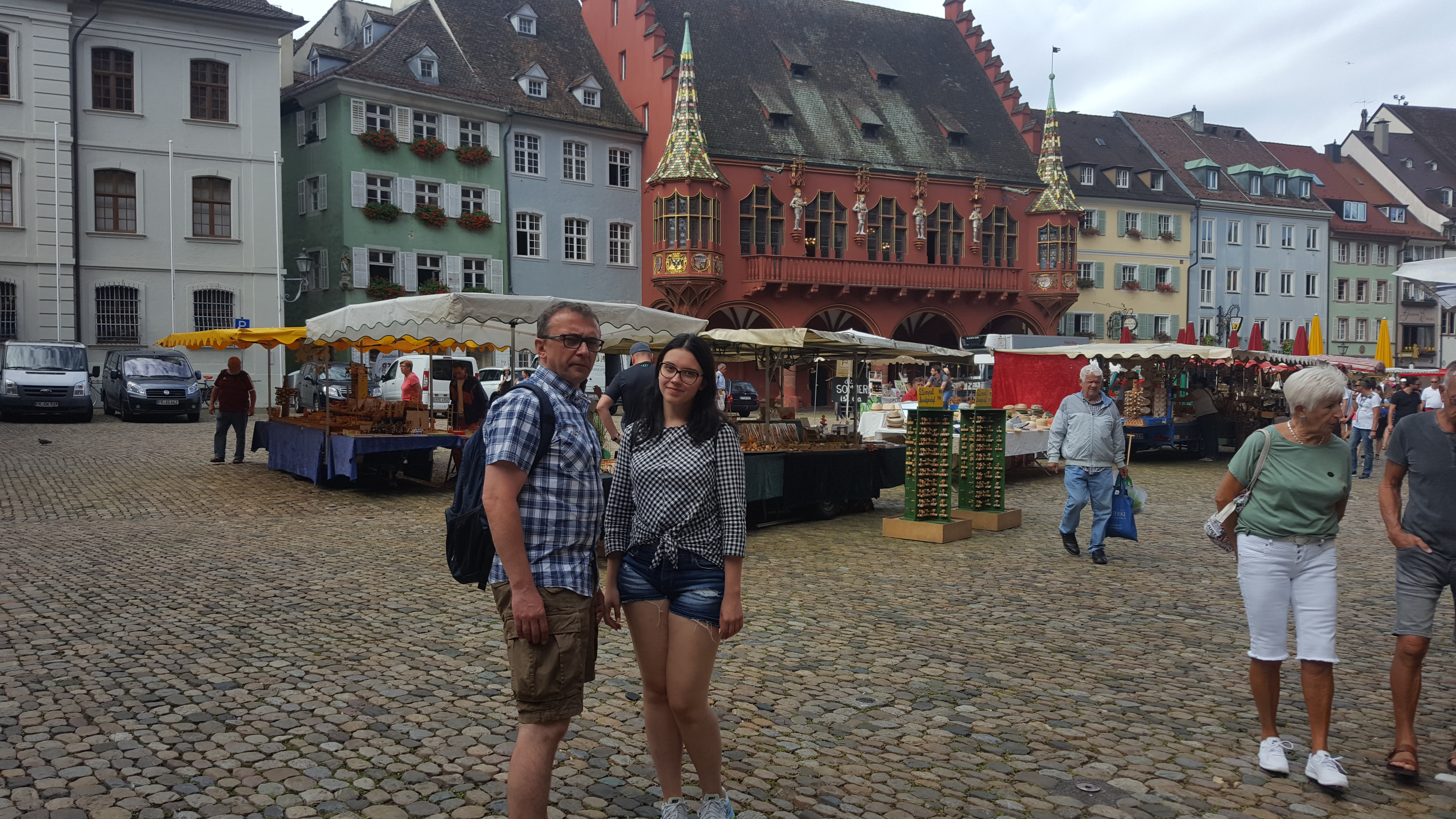 Drugi dzień zaczęłam dosyć relaksująco. Rano bieganie, potem basen i spacer po okolicznych górskich szlakach, a potem wyjazd do Freiburga. Fryburg, bo tak brzmi nazwa tego miasta po polsku, oddalony jest od Hinterzarten o około 40 kilometrów, więc ze spokojem można się tam udać zarówno samochodem, jak i busem. Warto zwiedzić starówkę z górującą nad miastem katedrą. W tygodniu odbywa się wokół niej jarmark, na którym można kupić niemal wszystko – od świeżych warzyw i owoców, po zabytkowe antyczne meble. Spędziłam tam jedynie godzinę, bo nie wychodziliśmy poza rejon starego miasta. Wiem jednak, że warto też odwiedzić budynki uniwersyteckie i popatrzeć na styl życia miasta – w tamtejszym regionie od dwunastej do wieczora nie wypada jeść niczego poza domowym ciastem. Dlaczego? Taka tradycja.